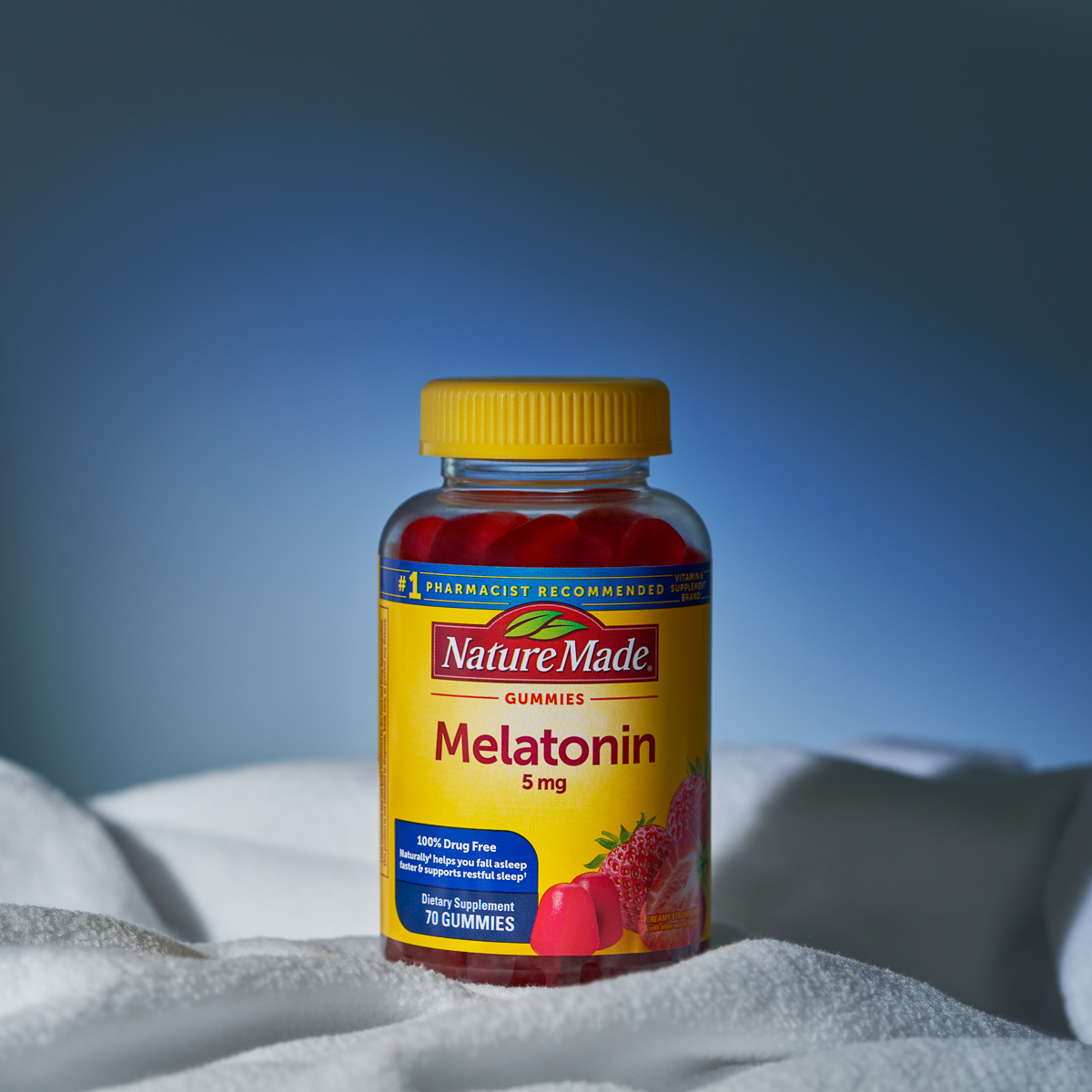 Melatonin is not an essential nutrient, so there is no shortfall. Nature Made® Melatonin supplements work with your body to help you fall asleep faster and support restful sleep.†