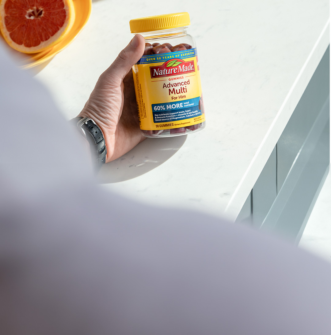 If you’re looking for vitamin supplements to help fill potential nutrient gaps in your daily diet, our multivitamins for men are an excellent place to start! At Nature Made®, many of our men's vitamins provide nutrients to help support your immune system, like Vitamin C, Vitamin D3 and Vitamin A, as well as some members of the Vitamin B complex, like Folic Acid and Vitamin B12, which help convert food into cellular energy your body can use all day long.†