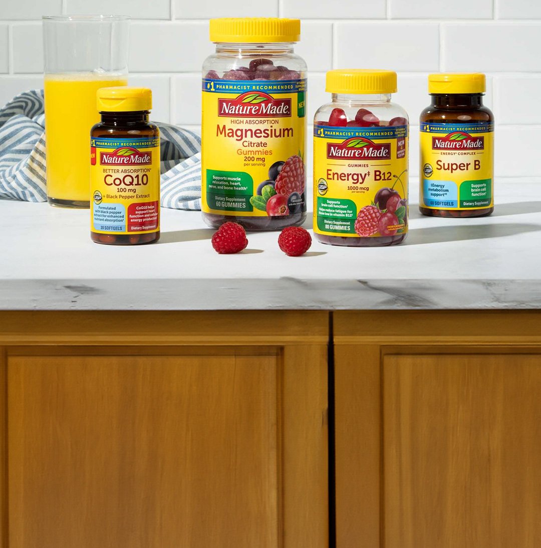 To help support cellular energy production in your body, consider implementing with B vitamins, magnesium and coenzyme Q10 (CoQ10) supplements into your routine. And don't forget to keep up with your healthy diet and exercise. At Nature Made, we offer a number of Energy tablets, softgels, and gummies to support your body from the inside out.†