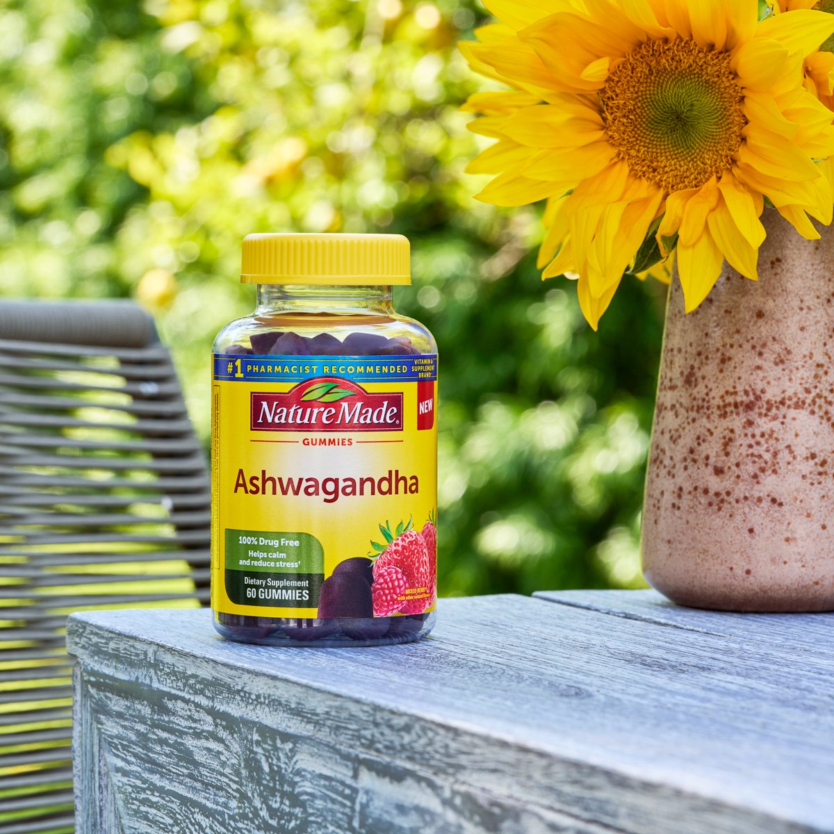 Nature Made® Ashwagandha Gummies offers daily support for stress. Ashwagandha is a traditional herb long used as an adaptogen to help adapt to stressors. Nature Made® offers this herb in two mixed berry fruit-flavored gummies using clinically studied KSM-66® Ashwagandha root extract to reduce feelings of stress.†