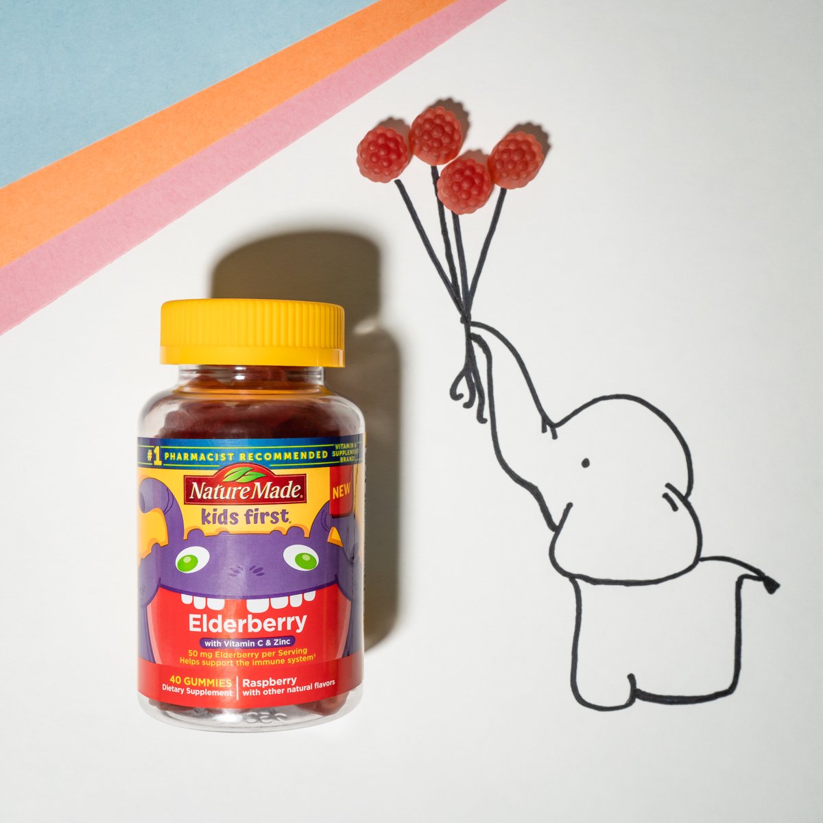 Kids First® Elderberry Gummies with Vitamin C and Zinc help support the immune system and provide antioxidant support. These delicious daily gummies are specially designed with your little ones in mind, offering an excellent source of Vitamin C and Zinc for kids ages 4–18. Like other berries, fresh elderberries contain anthocyanins, which are known to have antioxidant properties.[1] Vitamin C and Zinc are both key immune support nutrients. It's a perfect combo to help support your kids' healthy immune system.†