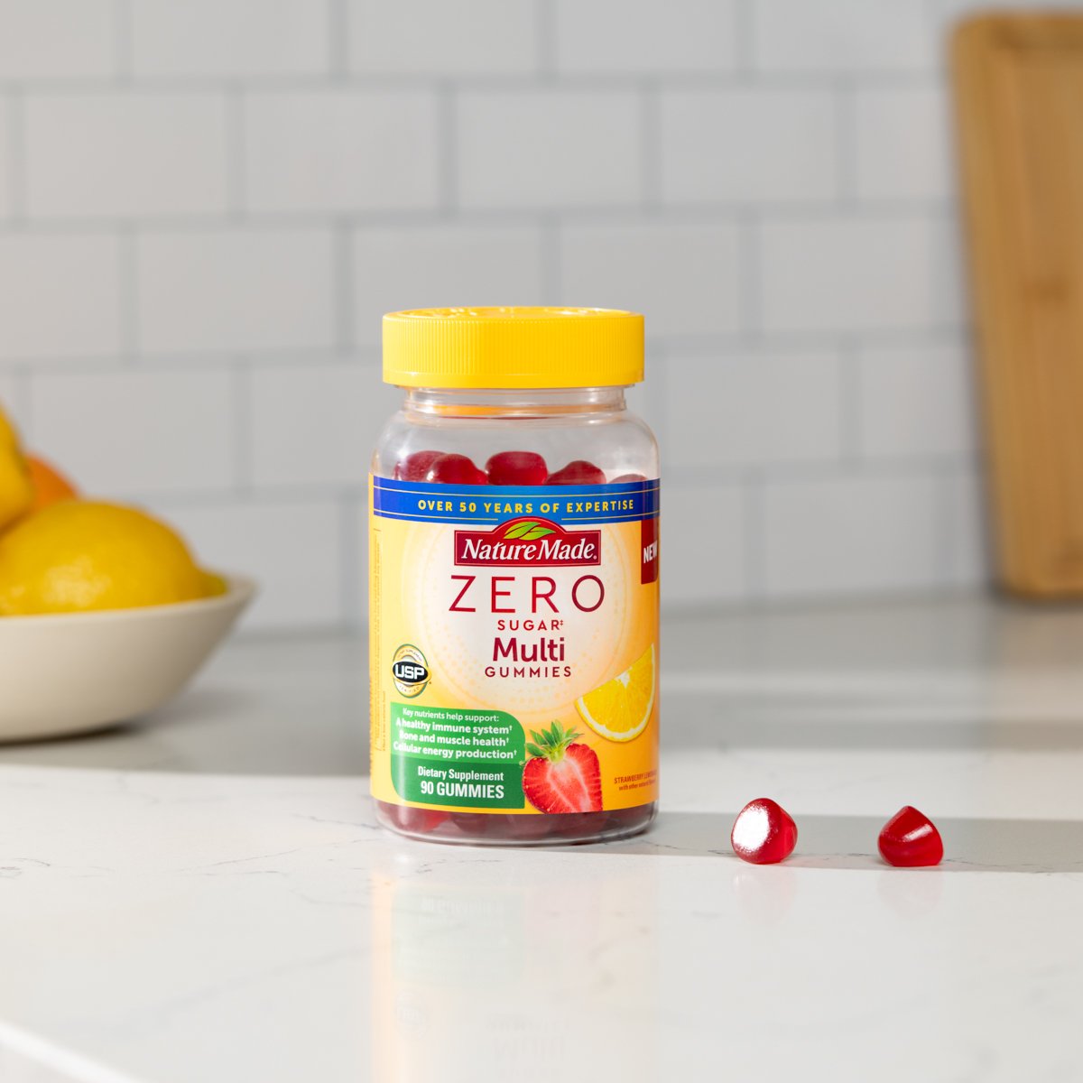 Nature Made® Zero Sugar‡ Multivitamin Gummies provide key nutrients for daily nutritional support with Zero grams of sugar. Ingredients help support a healthy immune system, bone and muscle health, energy metabolism★ and brain cell function. Best of all, these multivitamin gummies are aspartame free! We sweeten with a sugar alcohol known as maltitol, which has the best GI tolerance among the sugar alcohols.[2] Add these tasty gummies to your daily routine to help support your nutritional needs.†
